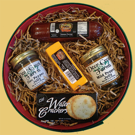 Perfect for that family or friend this holiday season. Troyer meats and cheeses meet Deer Creek Farms pepper jellies. !8oz's of our unique jellies, 12oz's of summer sausage, and 4oz's of cheese. |